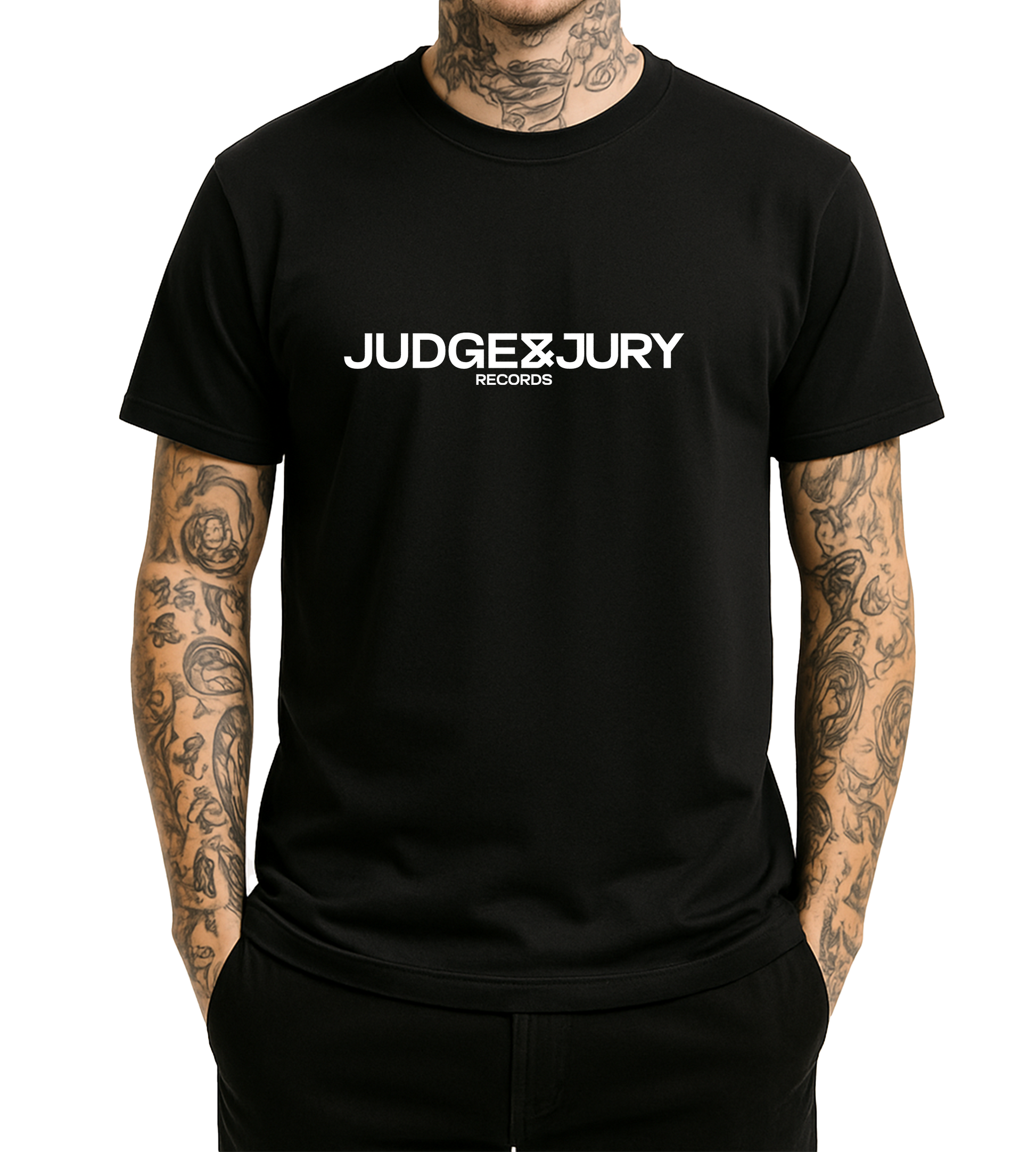 Rep the label with style. This premium black unisex tee features the bold Judge & Jury Records logo front and center, making it the perfect way to show your support for the artists you love.